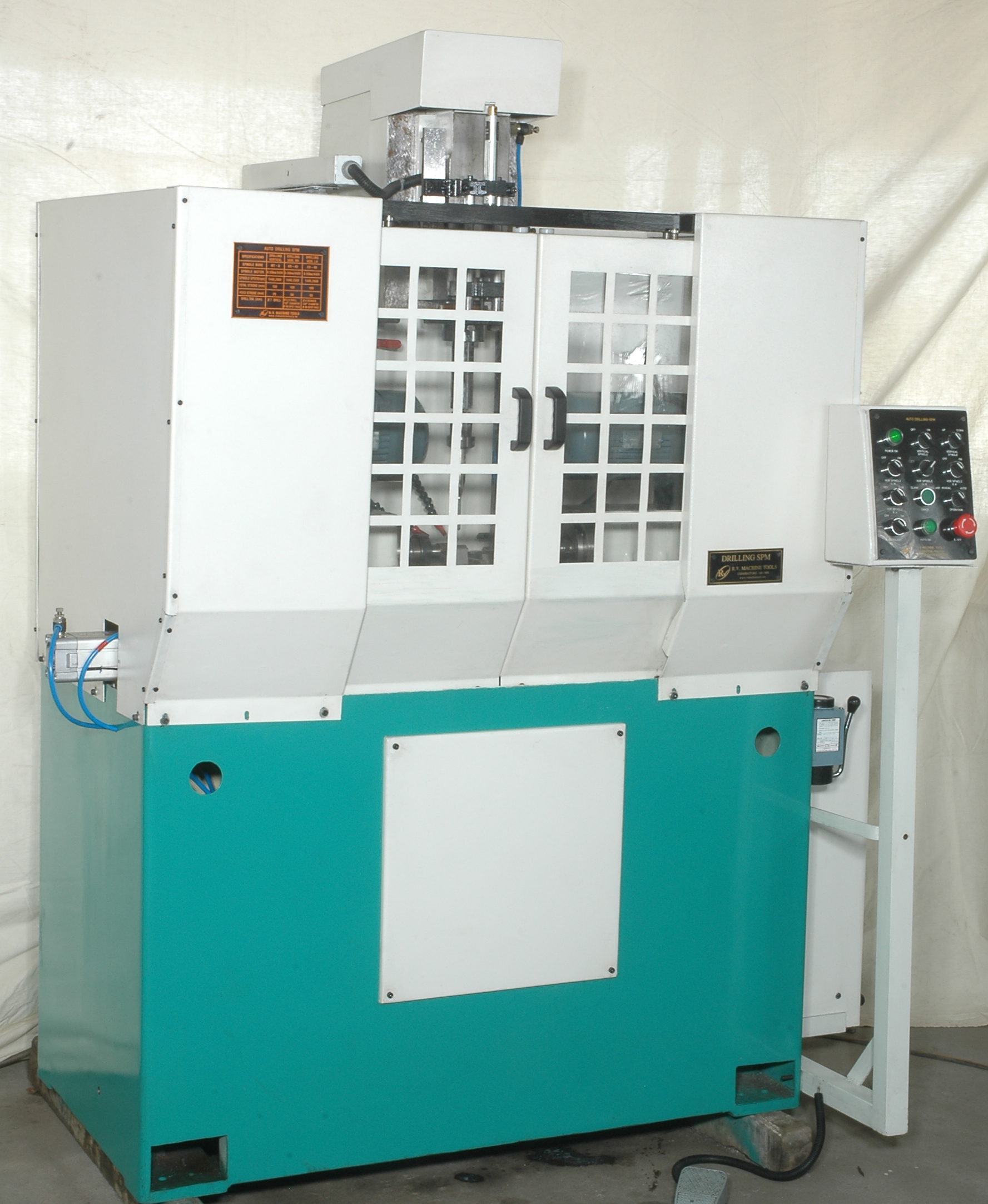 Drilling :DIA 4.2 x 2 nos Tapping :M5 x 2 Nos Operation Cycle Time : 30 Sec DRILL UNIT RVD 12-80-P : 1 No TAP UNIT RVT 16-6 : 1 No 2 SPINDLE DRILL HEAD : No 2 SPINDLE TAP HEAD: 1 No PART HOLDING 3 JAW SELFCENTERING CHUCKFLOOD COOLANT SYSTEM AUTO LUBRICATION PLC ELECTRICALS